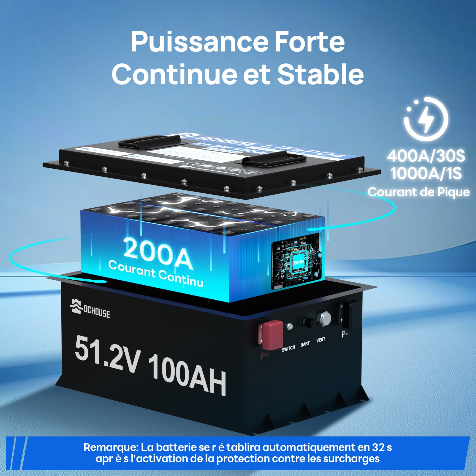 | Courant de charge/décharge continu max. | 200A / 200A |