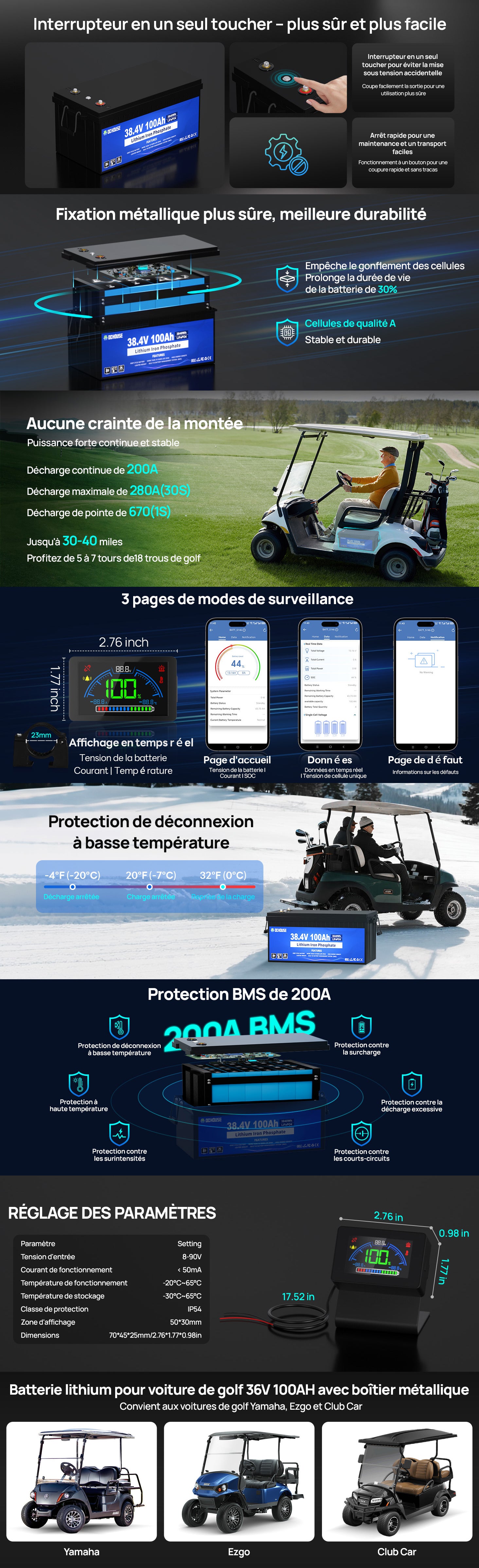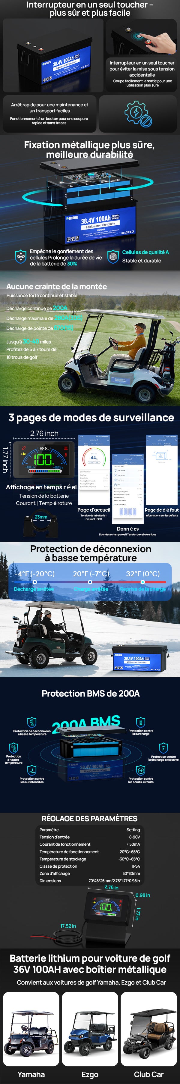 Batterie lithium 36V 100Ah 2.0 avec protection basse température et Bluetooth