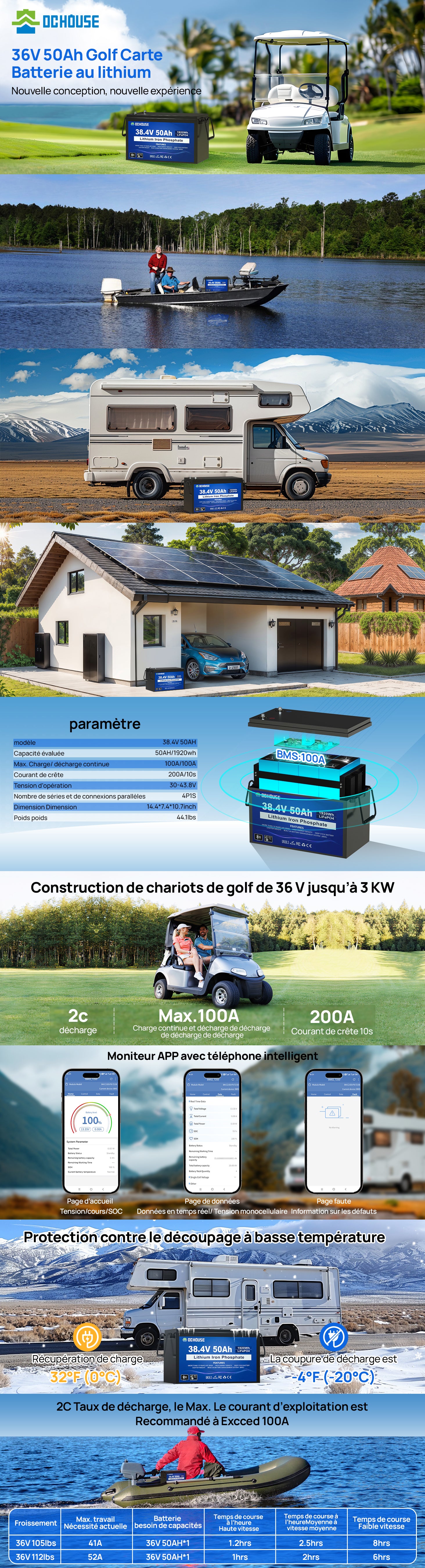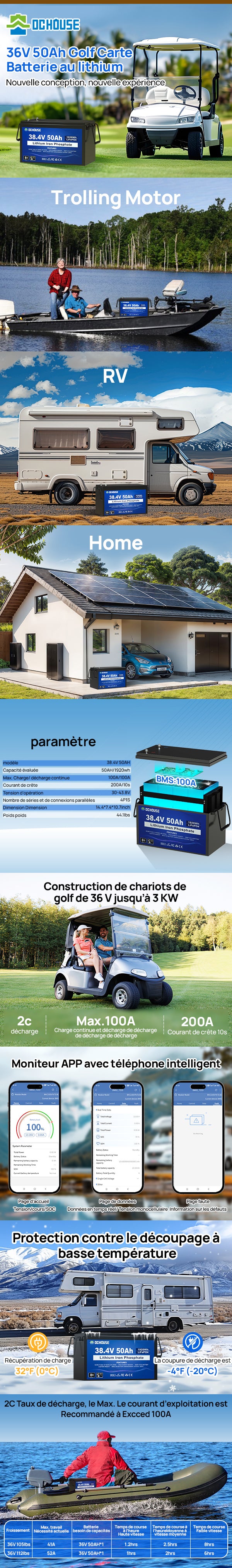 Batterie lithium 36V 50Ah avec protection basse température et Bluetooth