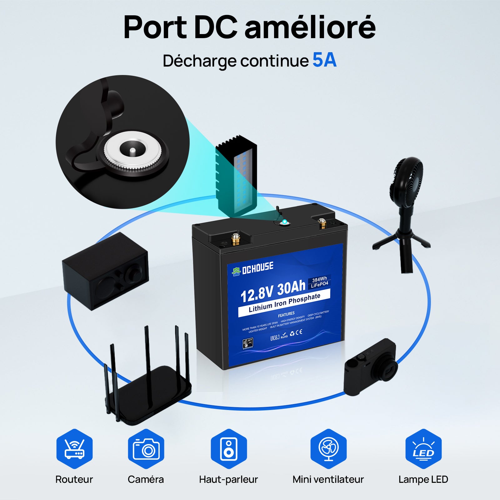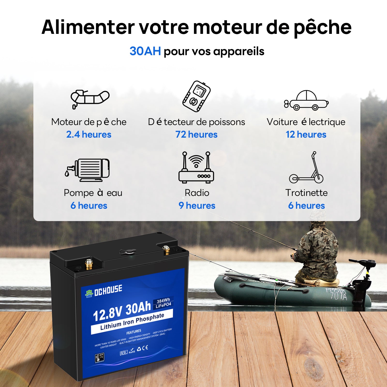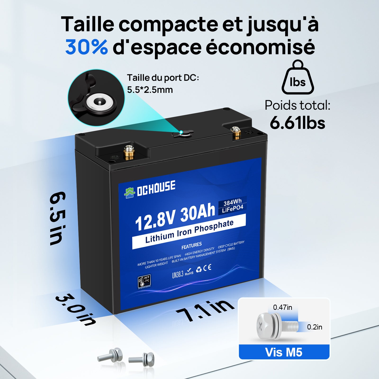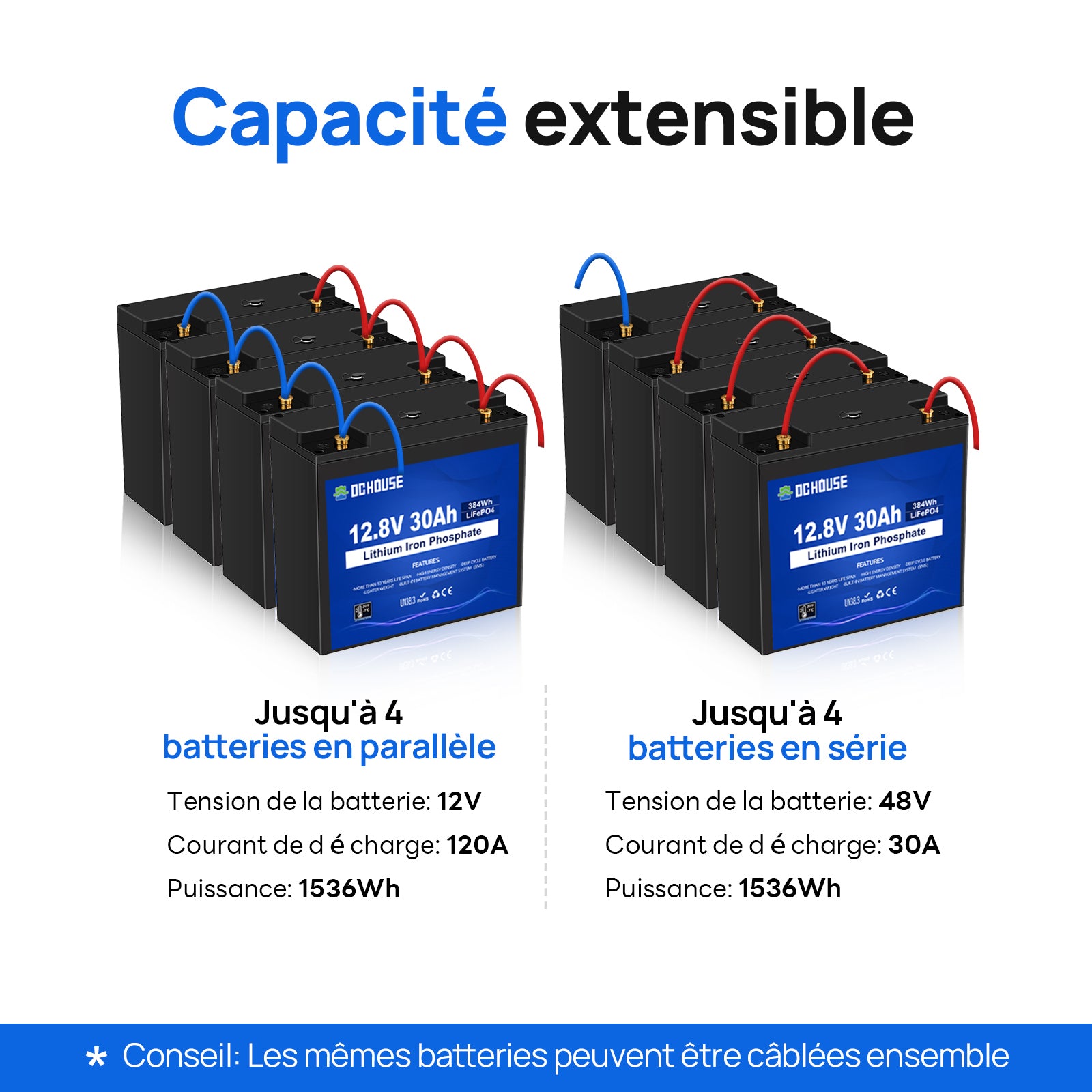 | Capacité de la batterie en Wh | 384 Wh (12,8V * 30Ah) |