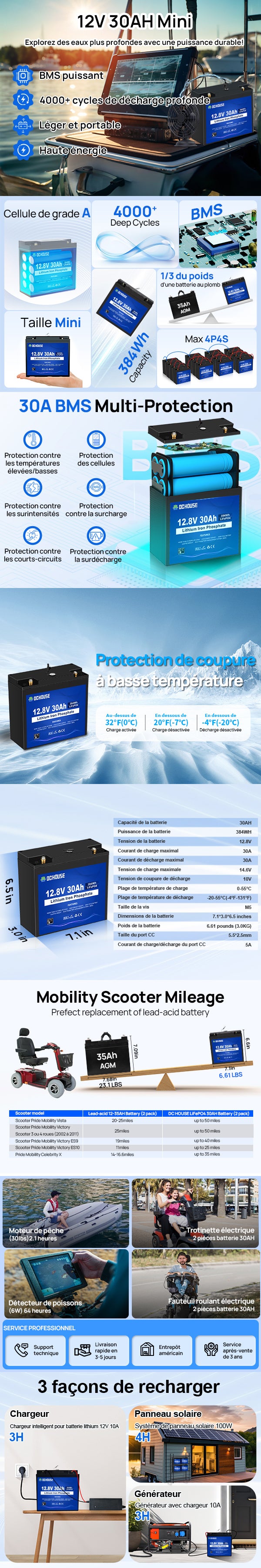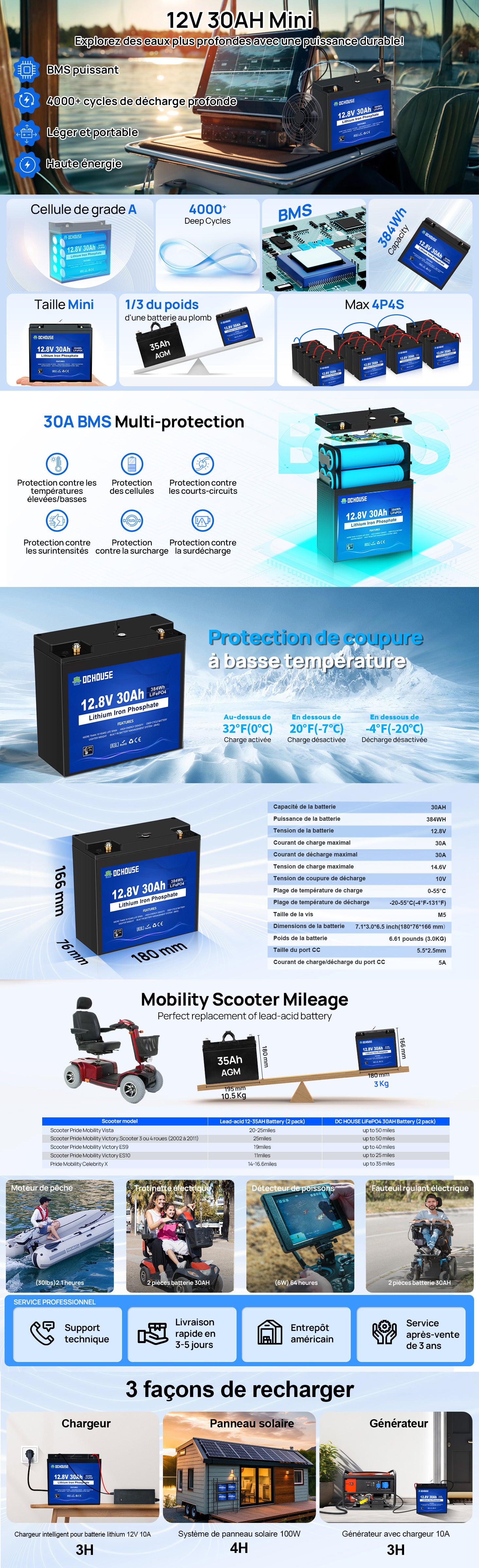 | Capacité de la batterie | 30Ah |