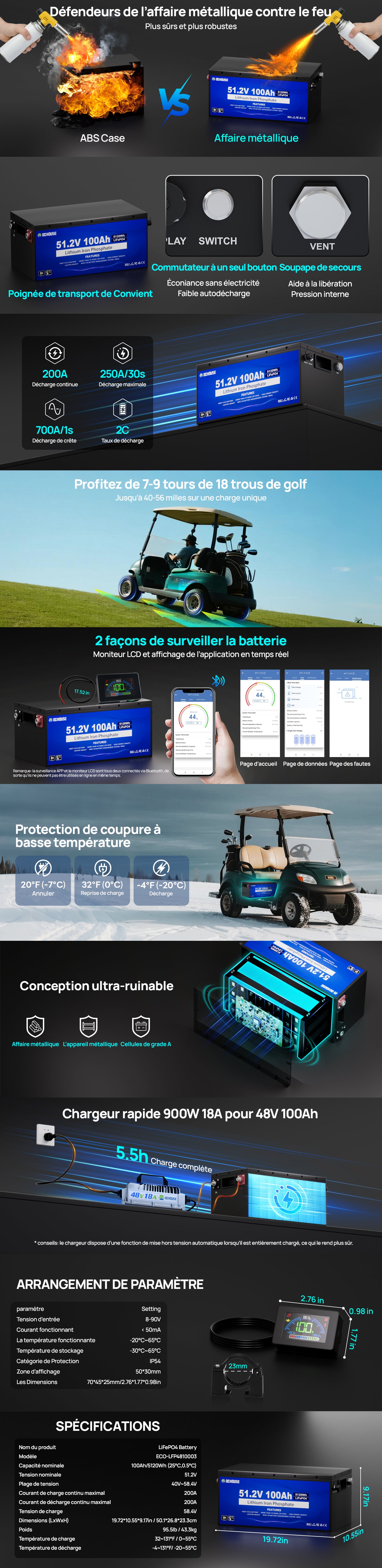 | Courant de charge/décharge standard | 50A / 50A |