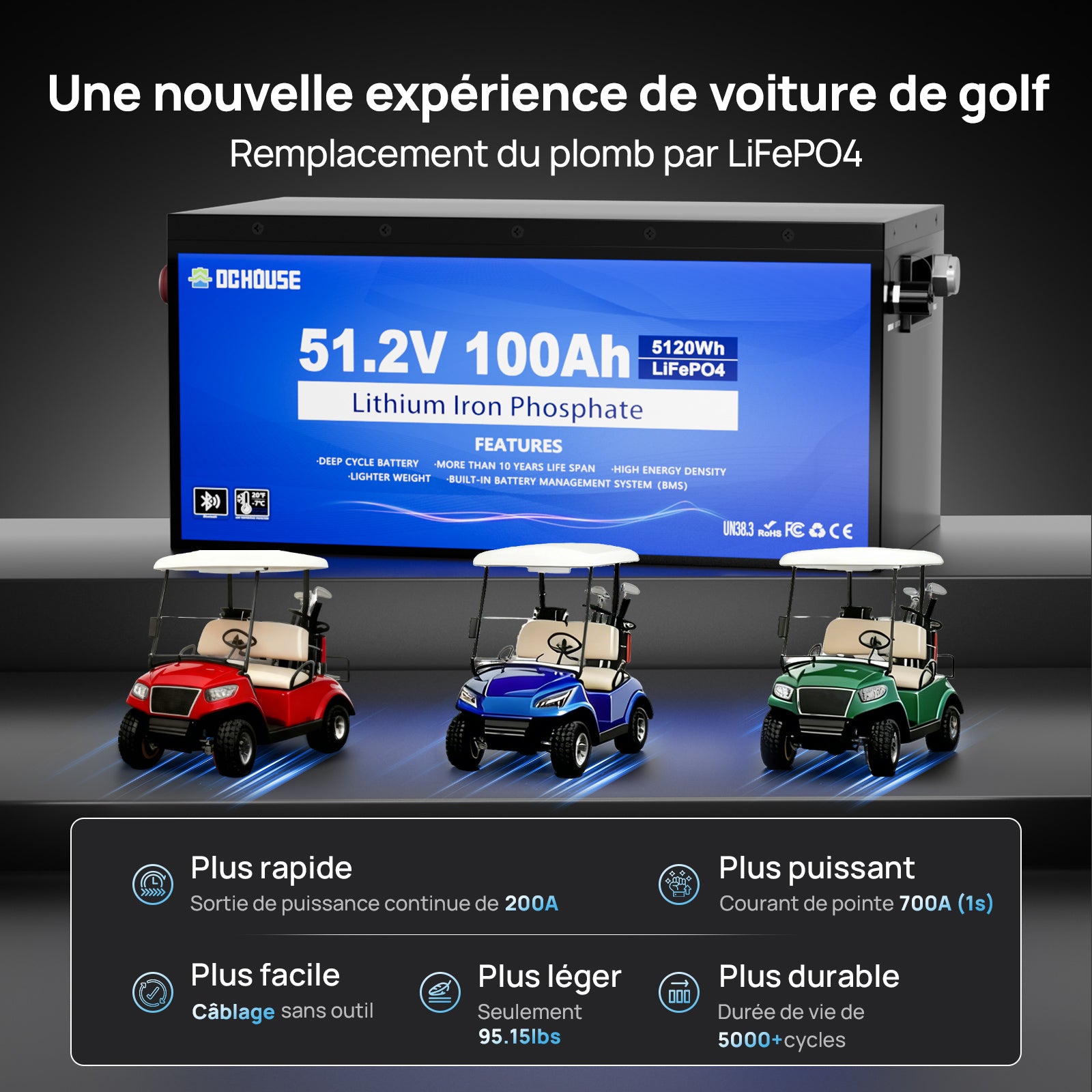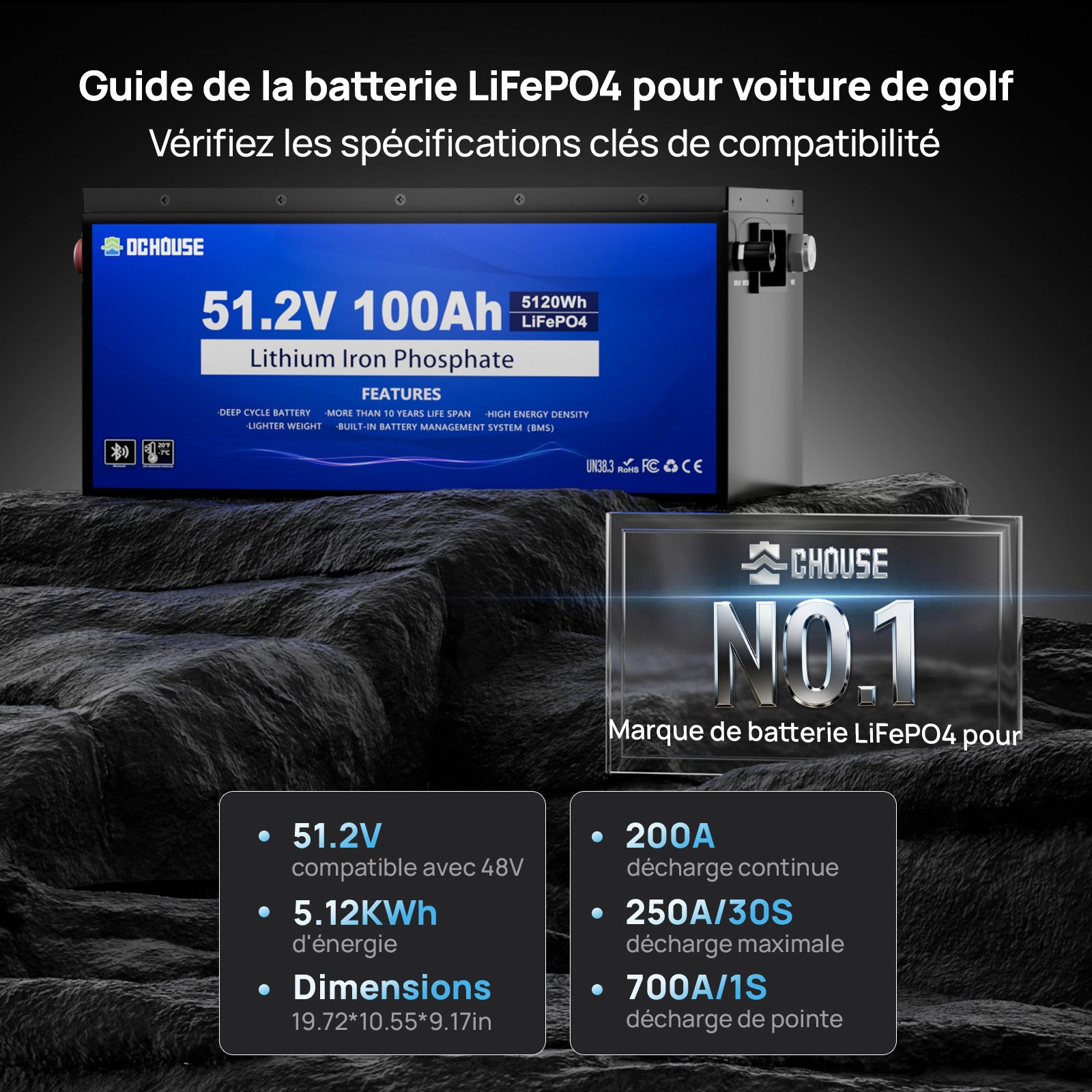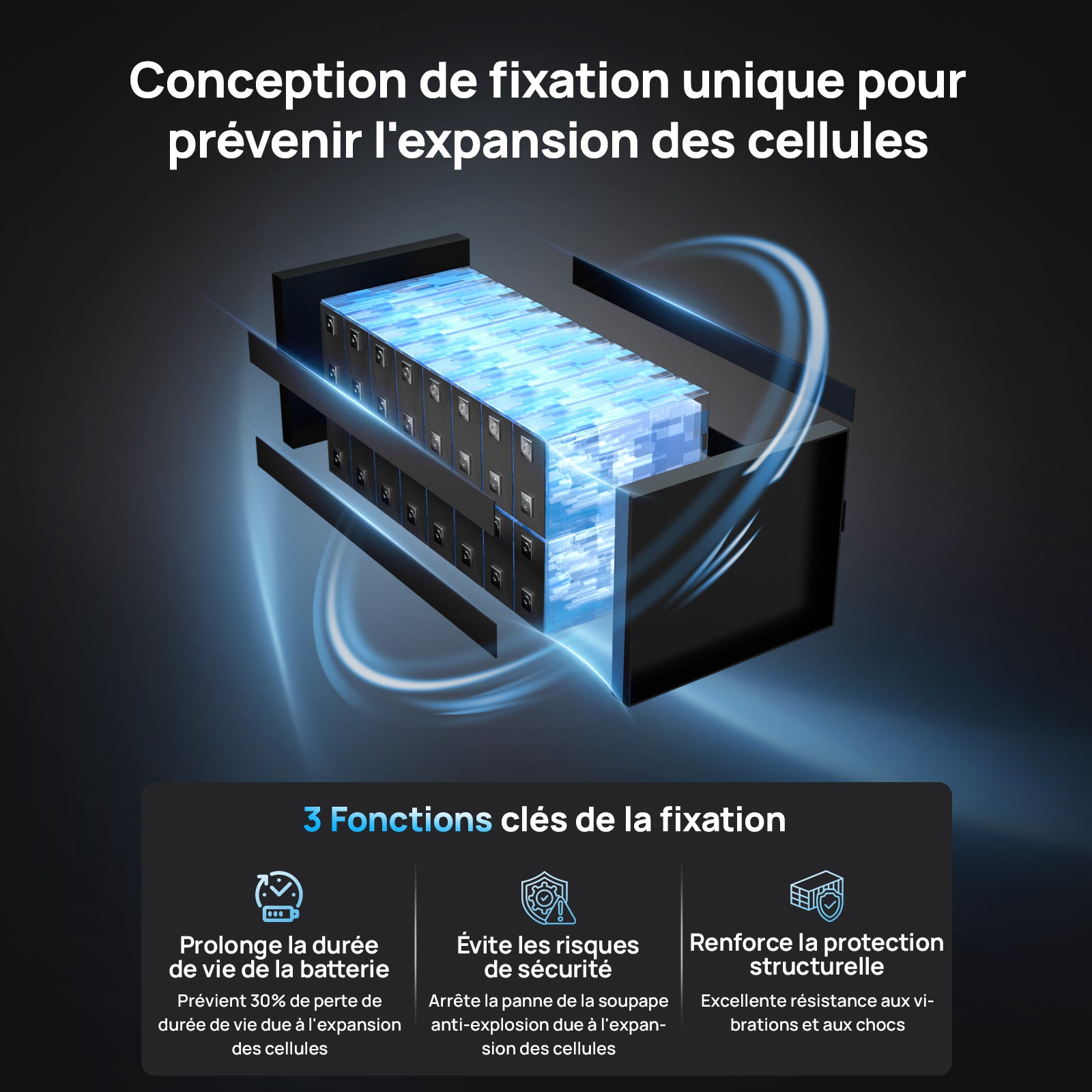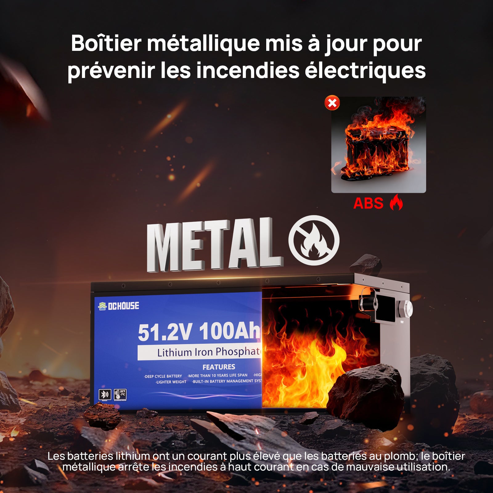 Batterie LiFePO4 48V 100Ah avec boîtier métallique, protection basse température, Bluetooth et chargeur inclus
