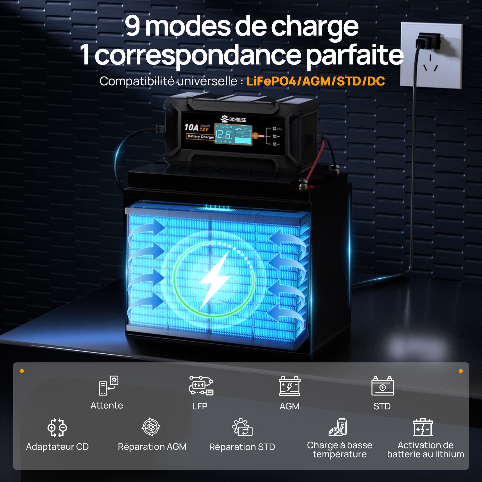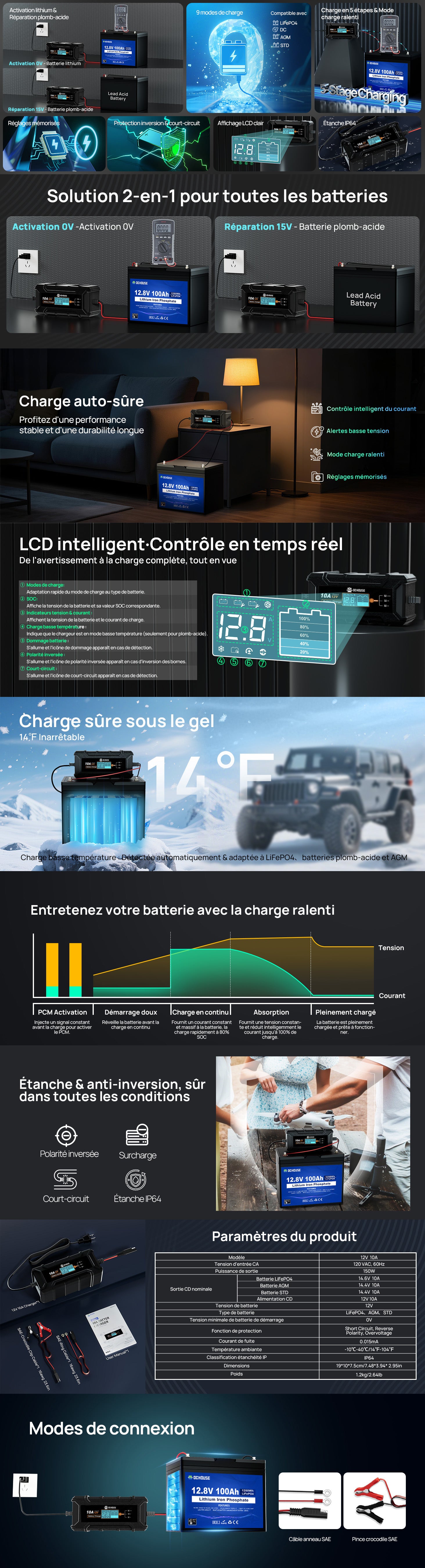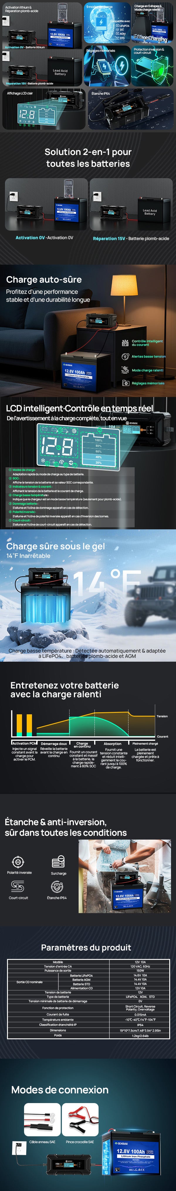 | Sortie DC - Batterie LiFePO4 | 14,6V 10A |