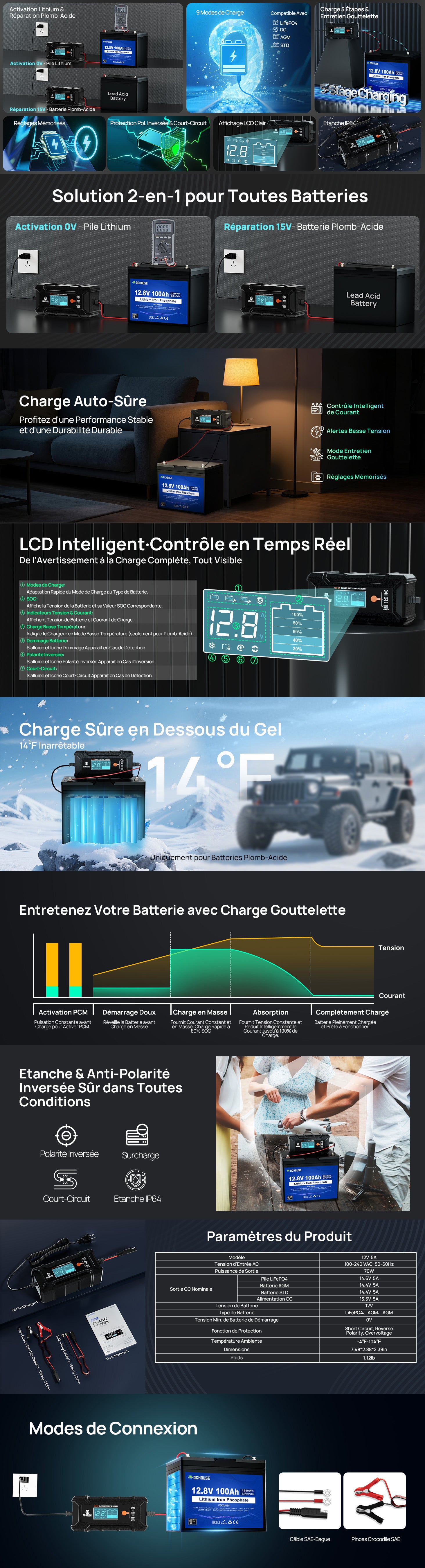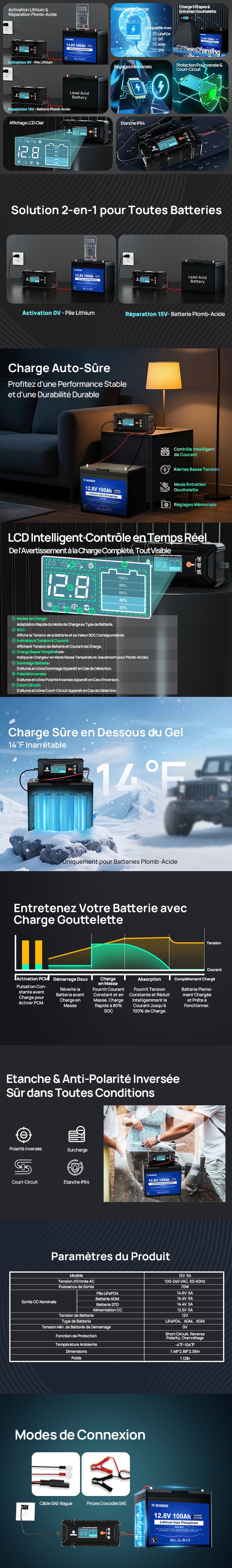 | Sortie DC - Batterie LiFePO4 | 14.6V 5A |